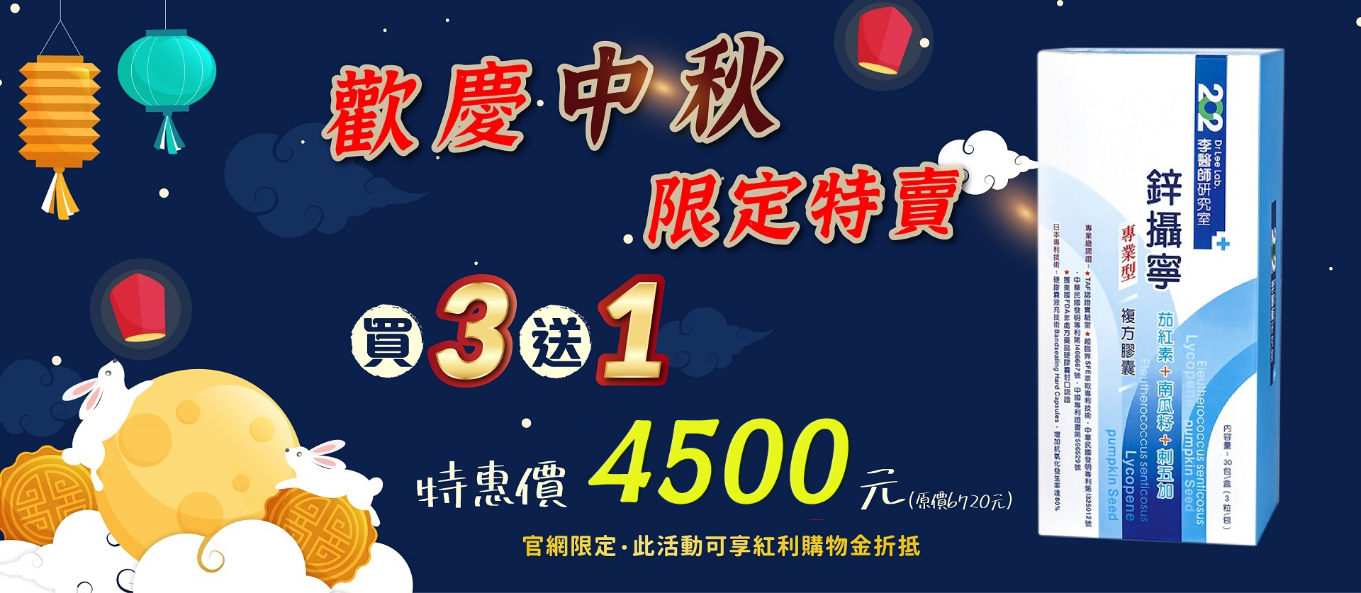鋅攝寧中秋超殺優惠三送一組