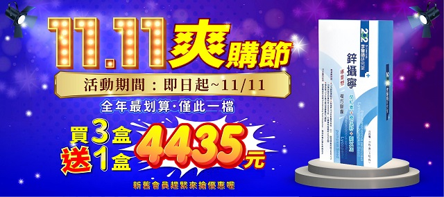 【預購】鋅攝寧雙11超殺優惠三送一搶購組